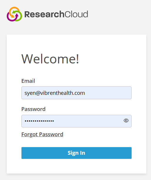 - Your initial login is complete! Your ResearchCloud screen will display functions related to your role.